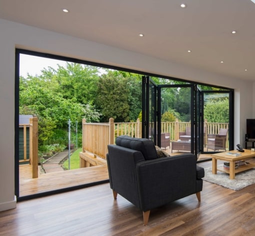 Perfect for creating a dramatic opening, bi-fold doors fold neatly to one side, removing the barrier between your extension and outside space. Our Origin OB36 is the slimmest door on the market.